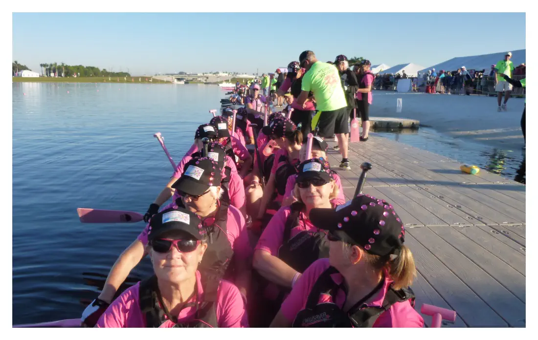 A boat full of hearts, paddling toward the light.
